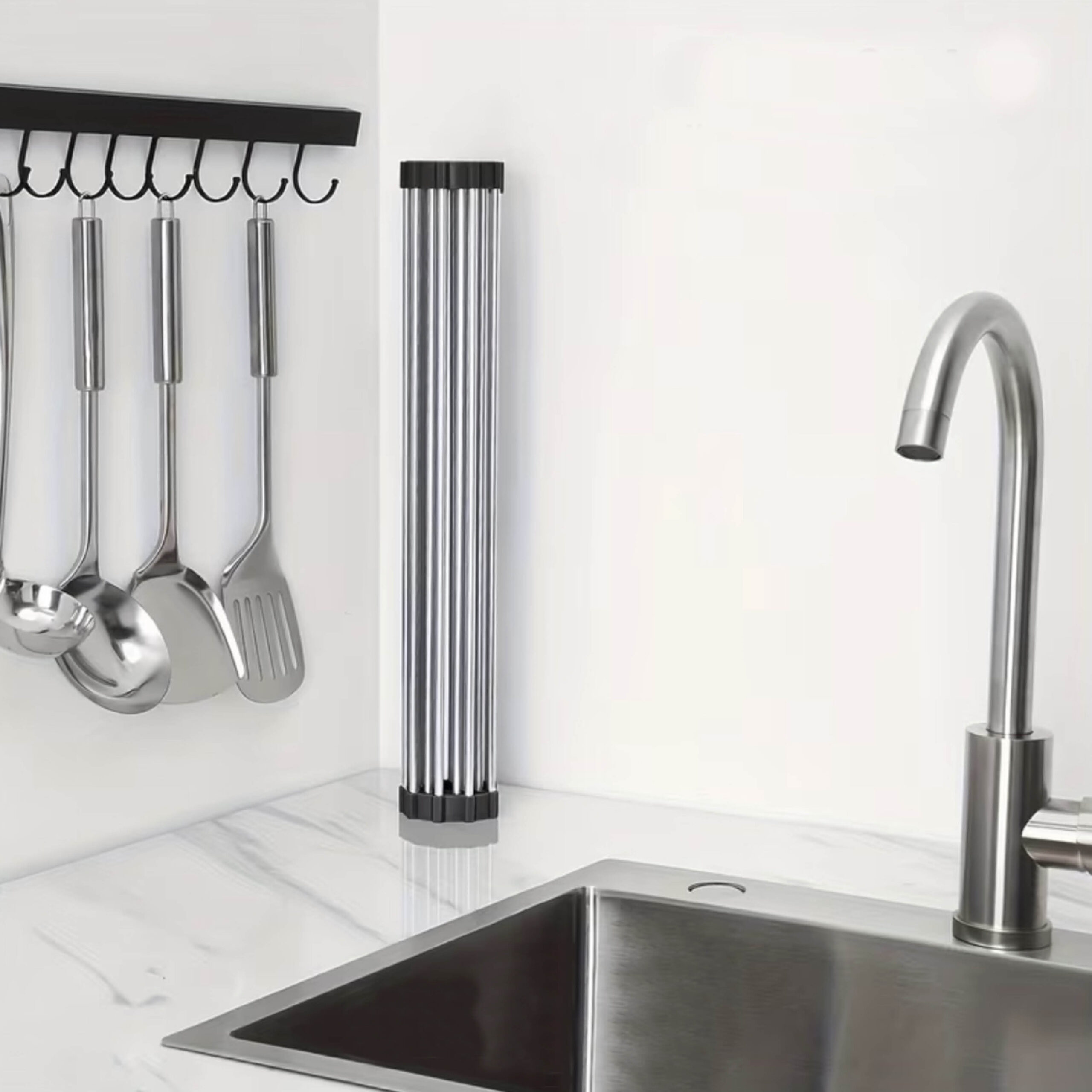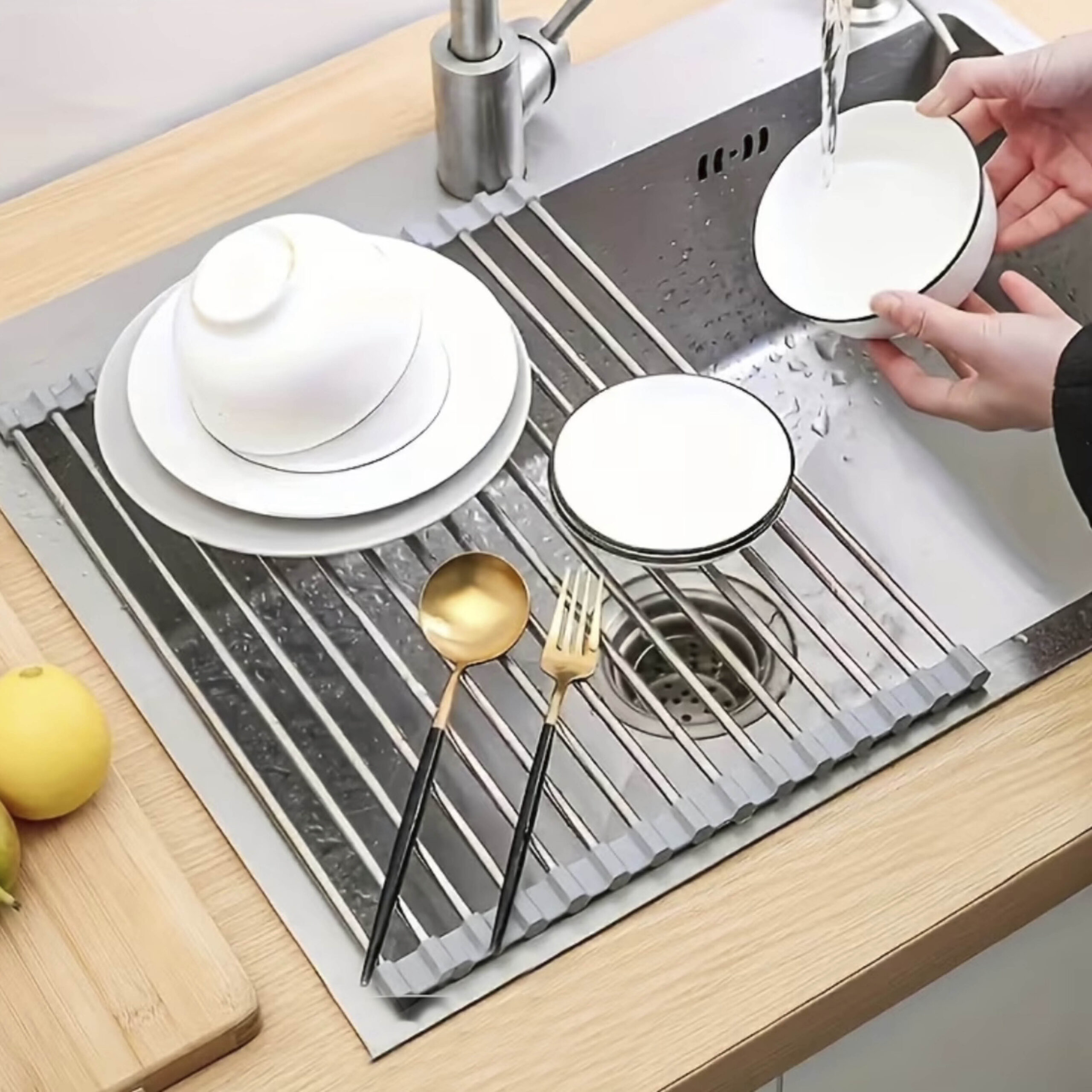 Dit oprolbare afdruiprekje leg je ideaal over je gootsteen heen. Je vaat kan zo drogen en je wint er ook ruimte mee!