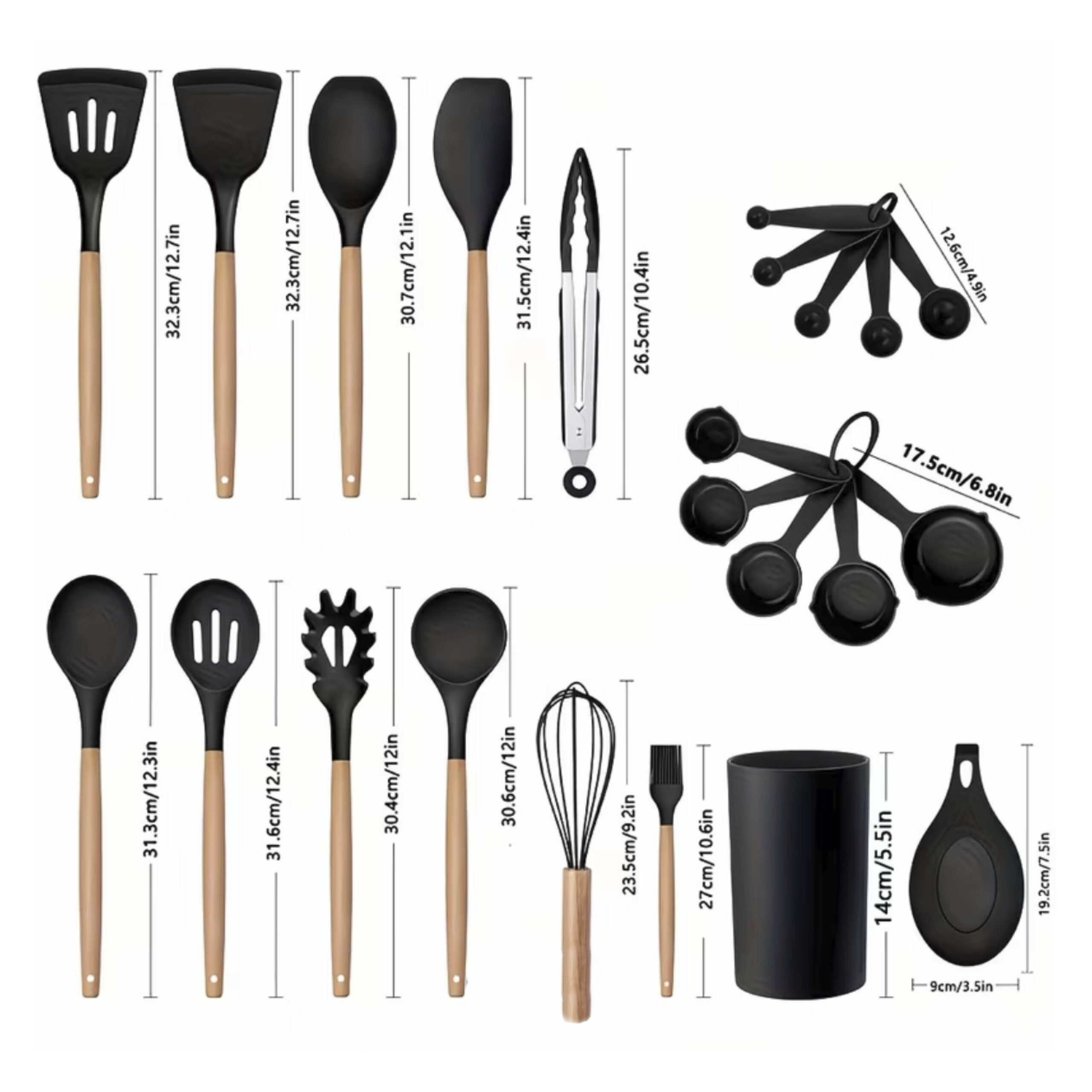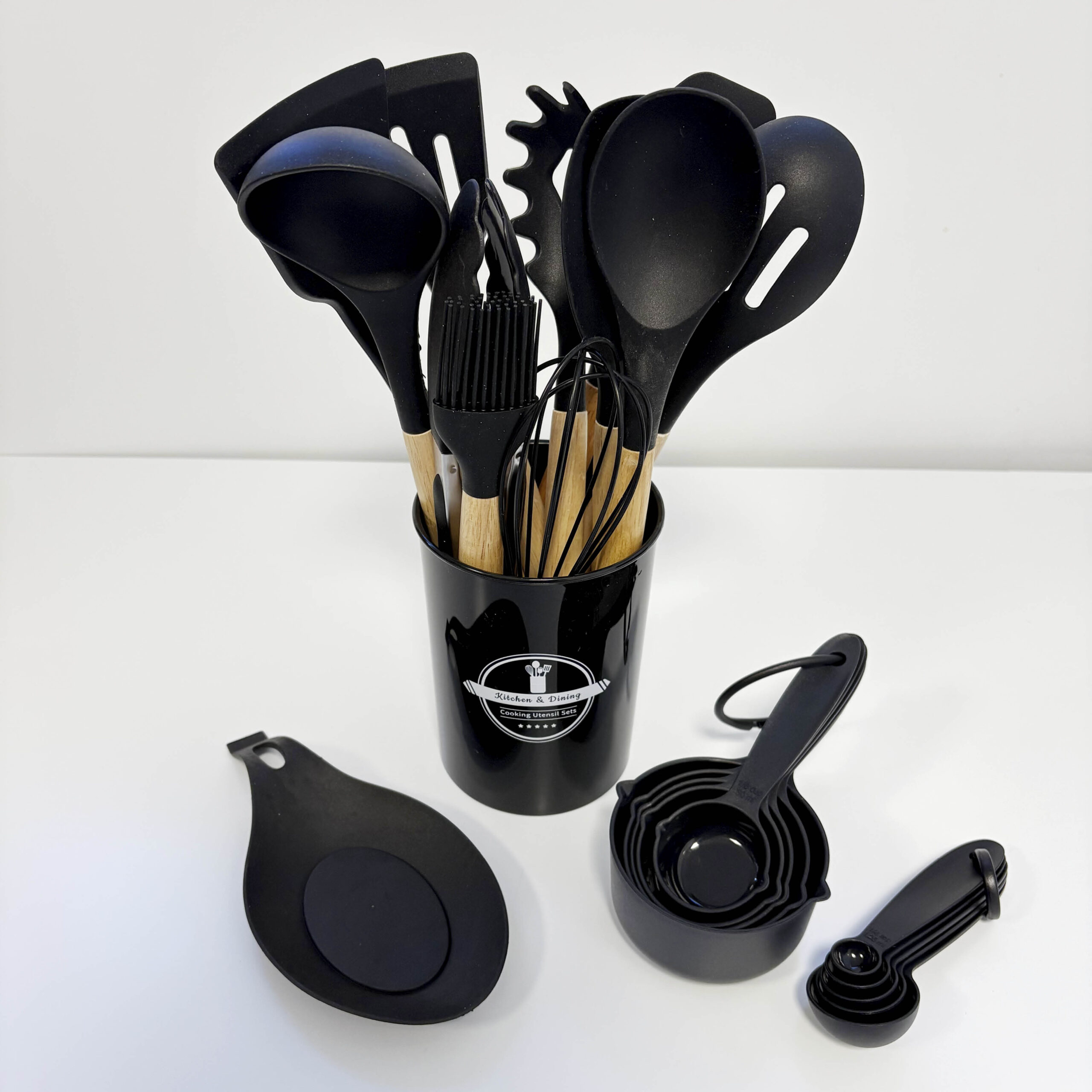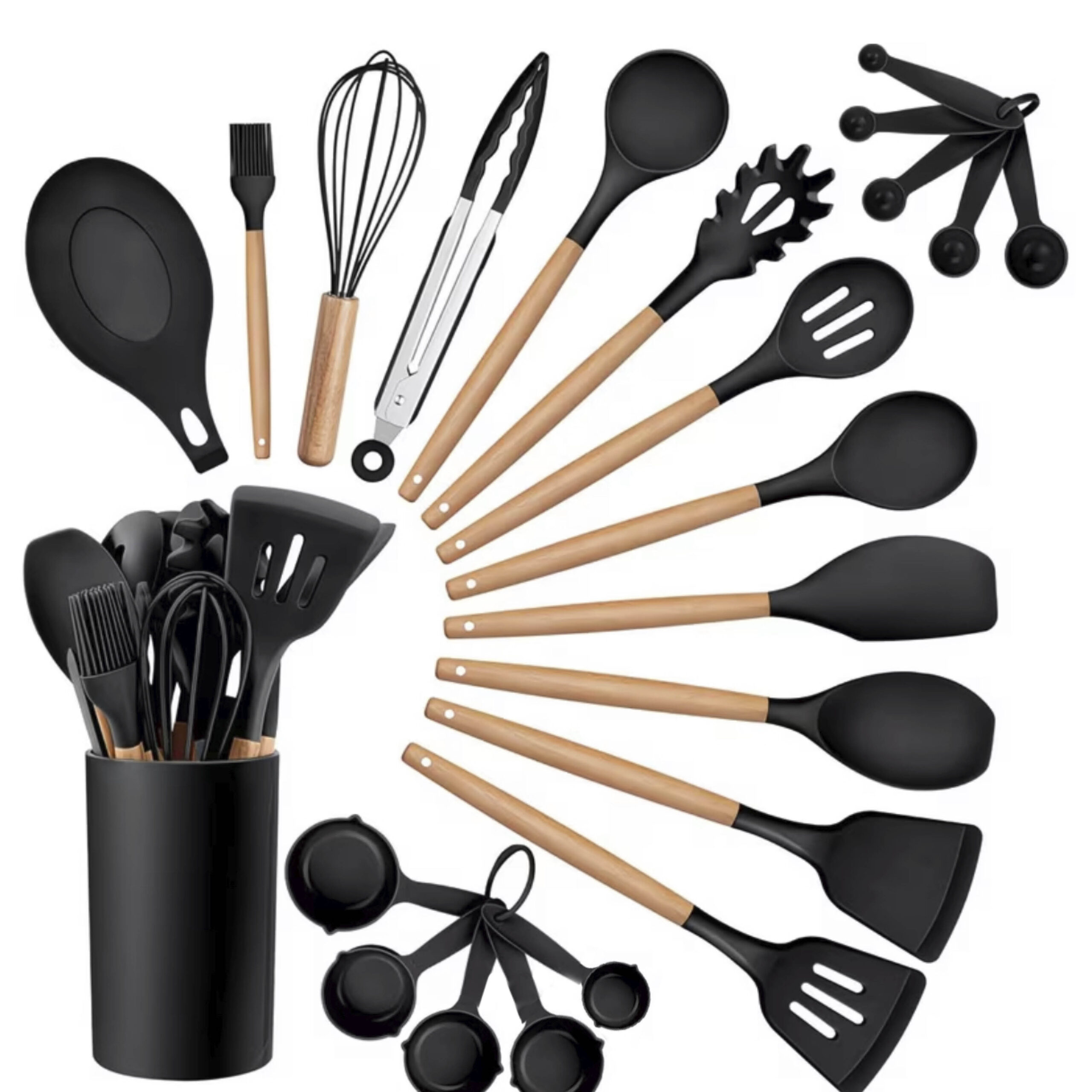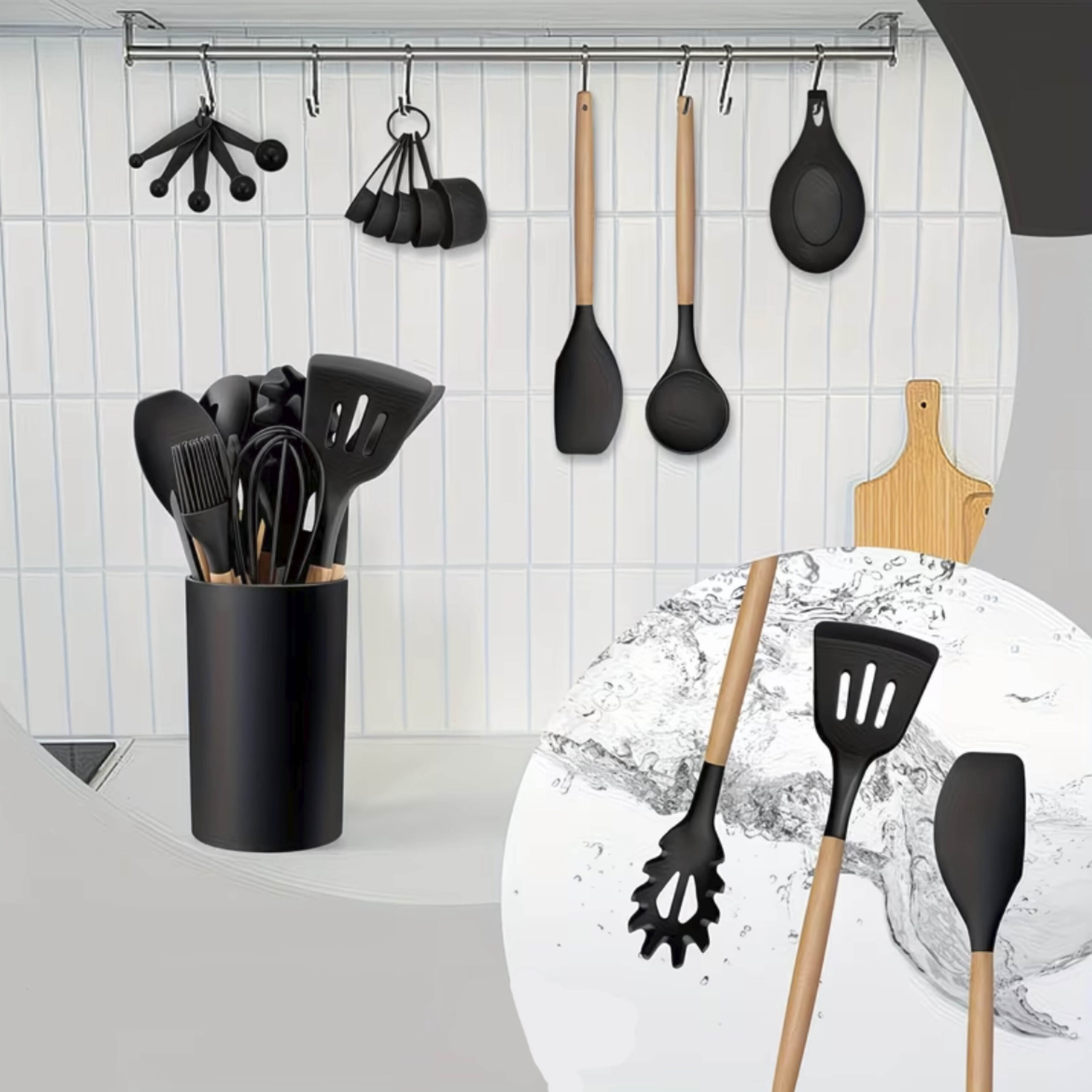 Keukengereihouder 23 stuks – Zwart siliconen/hout
