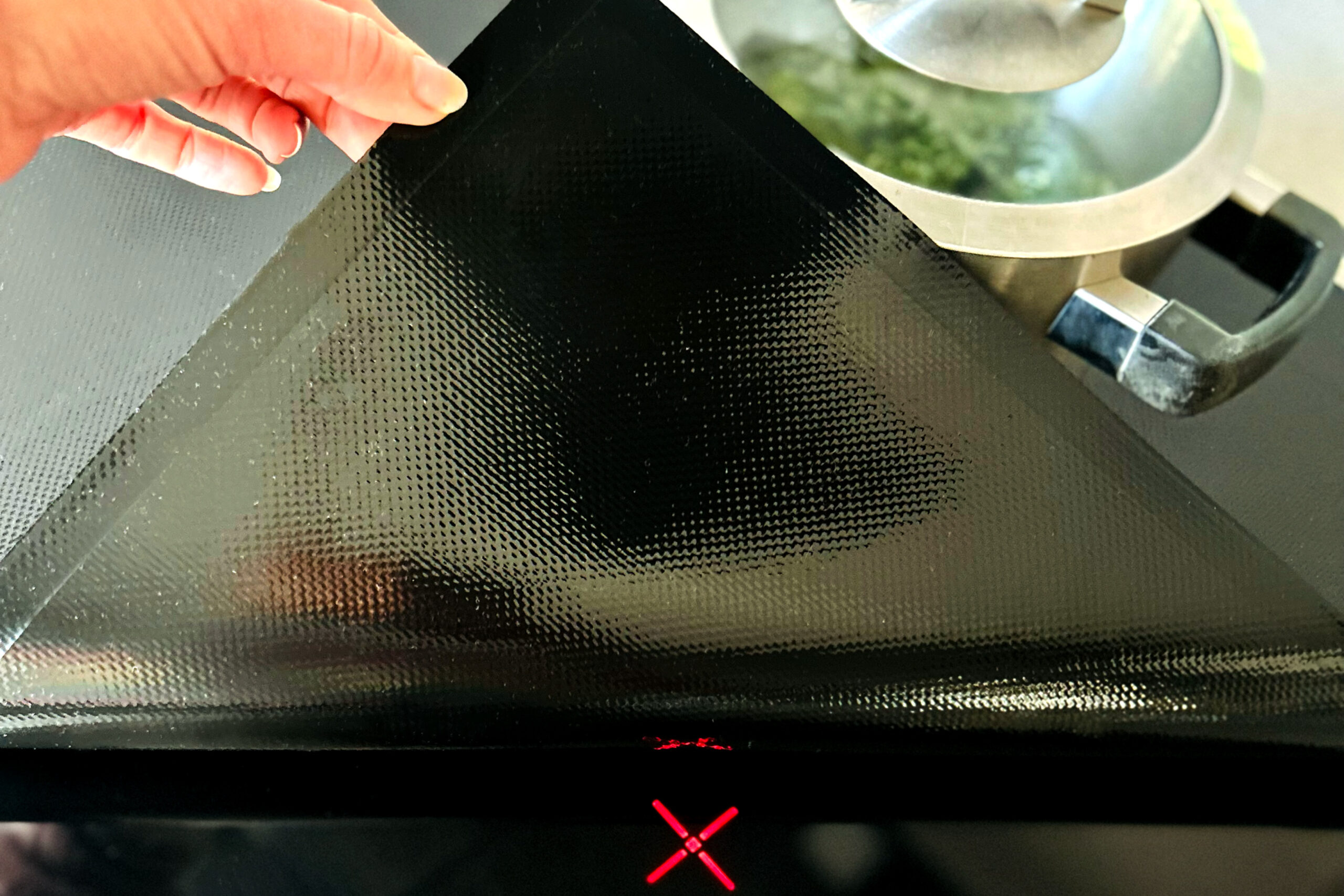 • Er zit een extra kleine overlap aan de afmeting, zodat hij goed en net over de kookplaat valt!